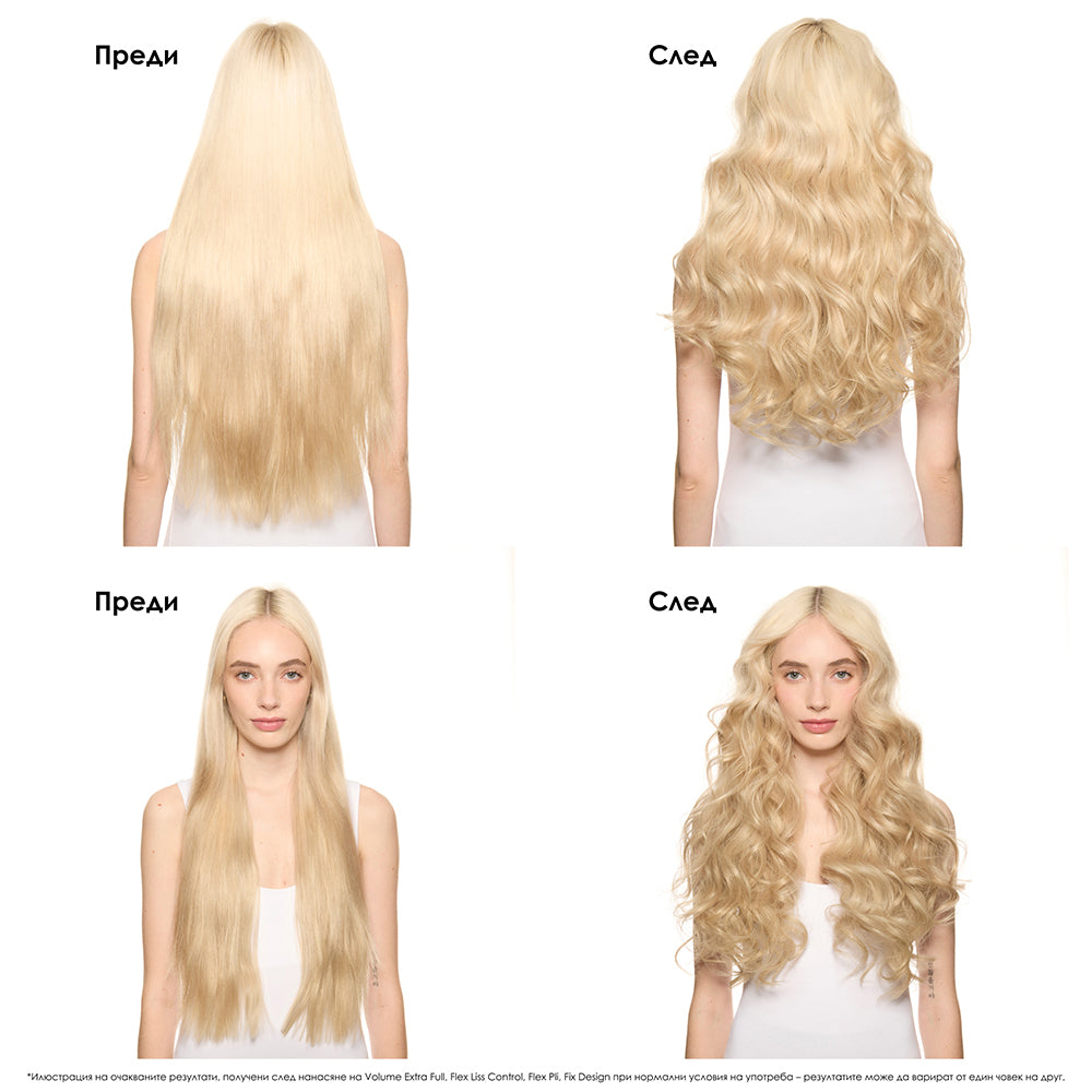 Начин на употреба: Напръскайте свободно на подсушена с кърпа коса от корените, изсушете със сешоар и използвайте маша или преса, за да стилизирате косата.