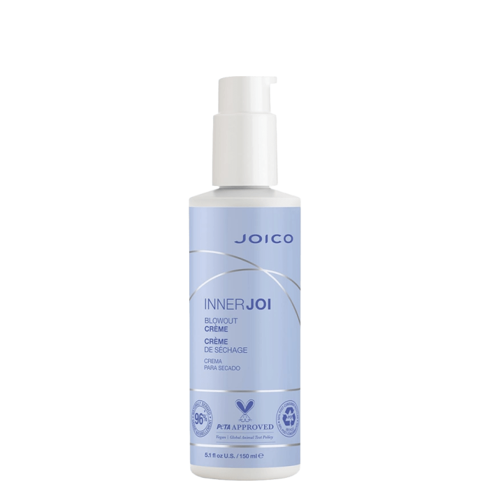 Joico Inner Joi Blowout Creme е термозащитен крем, който защитава при топлинна обработка до 232°C. Осигурява до 72 часова защита от нежелания фриз ефект. В резултат косата е мека и блестяща. Може да използвате за сушене на косата както със сешоар, така и по естествен начин. Формулиран е с масло от авокадо, растителен протеин и маслинов естер. Веган формула с 96% естествено извлечени съставки. Не съдържа силикони, парабени, глутен, SLS/ SLES сулфати, фталати и минерално масло. Подходящ за всички типове и текстури коса.