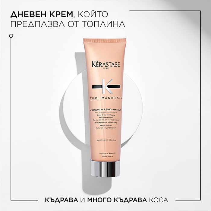 Curl Manifesto Creme DeJour Fondamentale е хидратиращ дневен крем без изплакване, който предпазва от топлина и намалява фриз-ефекта със 72%. Формула с глицерин, който дава 74% хидратация, предпазва косата от влагата и премахва фриз ефекта. Специалните растителни масла подхранват косата и резултатът е перфектно дефинирани къдрици всеки ден. Запазва оптималните нива на хидратация в косъма, улеснява разресването с 98% и осигурява повече еластичност.