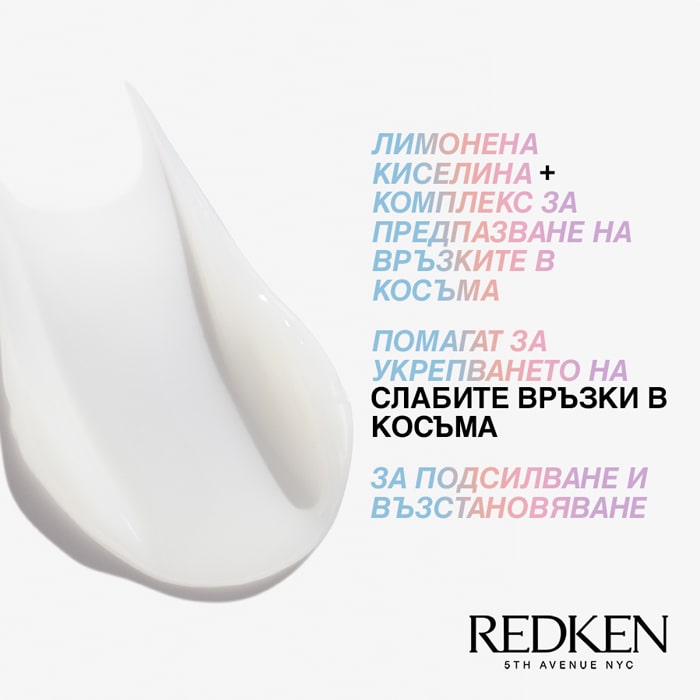 Крем със силно концентрирана формула без изплакване, който заздравява уврежданията, укрепва косъма, правейки го устойчив и предпазва при термообработка до температура от 230 °C. Подхранва и осигурява оптимално възстановяване и защитава цвета на боядисаната коса от избледняване, благодарение на балансираното ниво на pH. Формулата на крема с лимонена киселина подновява прекъснатите връзки в косъма и възстановява структурата му до здрав вид. Неутрализира фриза, намалява накъсването и придава блясък.