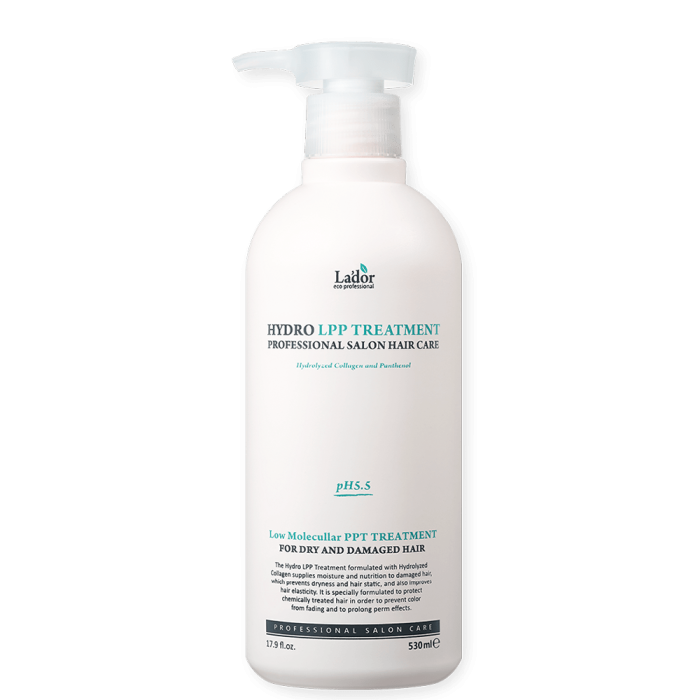 Балсамът за коса La'dor Hydro LPP Treatment помага за лесното разресване и разплитане на косата. Съдържа нискомолекулни полипептиди, благодарение на които активните съставки проникват в увредената коса и я възстановяват. Маслиновото масло, маслото от жожоба и хидролизирания колаген правят косата по-силна. Балсамът помага за изглаждането на косата, предотвратява цъфтенето на краищата и я прави мека и подхранена. Осигурява баланс на маслата и влагата в косъма и неутрализира стойността на pH на косата.