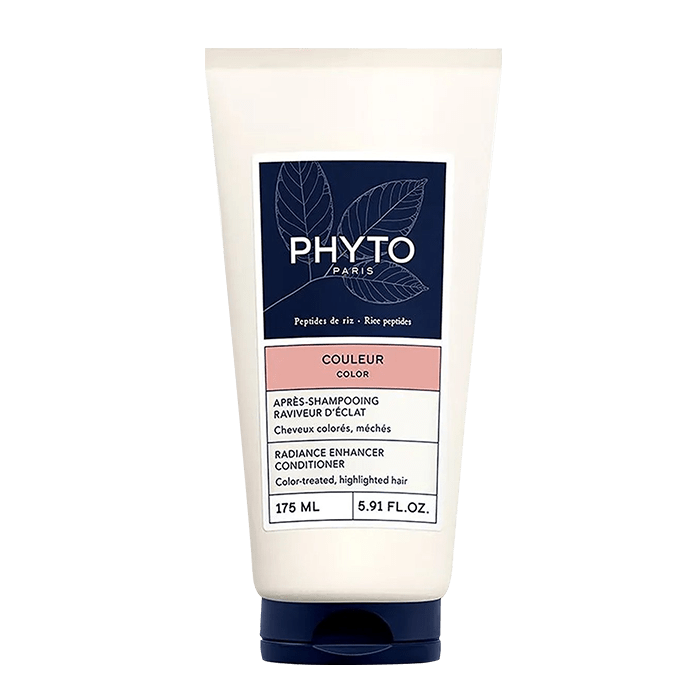 PHYTO Radiance Enhancer Conditioner разплита косата, хидратира и съживява цвета на третираната и боядисана коса още от първата употреба. Косата е по-бляскава и цветът е сияен за 9 седмици. Комплексът от оризови пептиди запазва интензивността и сияйността на цвета в продължение на седмици. Маслото от каранджа подхранва косъма и прави косата мека и гладка. Екстрактът от еделвайс има антиоксидантни свойства и защитава космения фоликул. Органичният екстракт от бял слез (бяла ружа) прави косата два пъти по-бляскава.