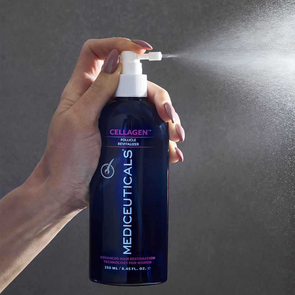 Биоактивен спрей Cellagen Follicle Revitalizer е специално разработен за намаляване на прекомерния косопад и изтъняване на косата, както и за стимулиране на растежа. Формулиран с иновативния патентован комплекс Triaminocoptinol Complex™, който стимулира микроциркулацията в скалпа, като подобрява усвояването на хранителни вещества от космените фоликули. Спомага за детоксикация на фоликулите от DHT (дихидротестостерон) и потиска образуването му. Подходящ е за жени с временни хормонални промени като бременност, кърмене и менопауза. Подпомага поддържането на косъма в оптимално състояние и създава благоприятна среда за здравословен растеж. Има лека консистенция, която не оставя следи. Формулата е pH балансирана, съобразена с естествената киселинност на кожата. Подходящ за всеки тип и текстура коса. Ползи: |