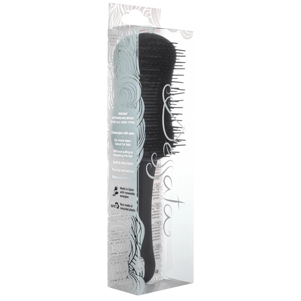 Подходяща е за използване както на суха, така и на мокра коса – ефектът против накъсване и разплитане е еднакво ефективен. Леко плъзнете четката от корените до краищата, а тя ще започне постепенно да разплита възлите по пътя си. Тъй като влакната на четката са много гъвкави и имат памет за възстановяване, при среща с много здрав възел те ще се огънат нежно, за да избегнат засядане. В същото време, благодарение на своите 440 влакна – което е 5 пъти повече от обикновената четка – с всяко преминаване през косата си тя ще действа по-бързо и ще разплита без усилие.