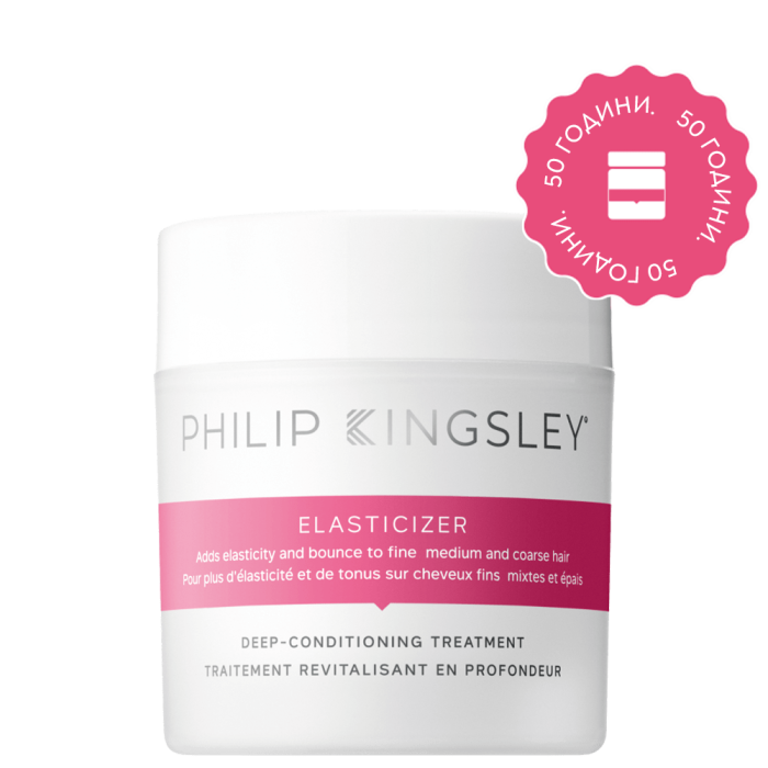 Най - емблематичният продукт на Филип Кингсли, създаден през 1974 г. специално за легендарната Одри Хепбърн. Това е първата в света терапия за коса преди измиване с шампоан предназначена за възстановяване на суха и увредена коса. Издържал изпитанието на времето Еластисайзър е най-продаваният продукт на марката - всяка минута в света се продава по един Еластисайзър.