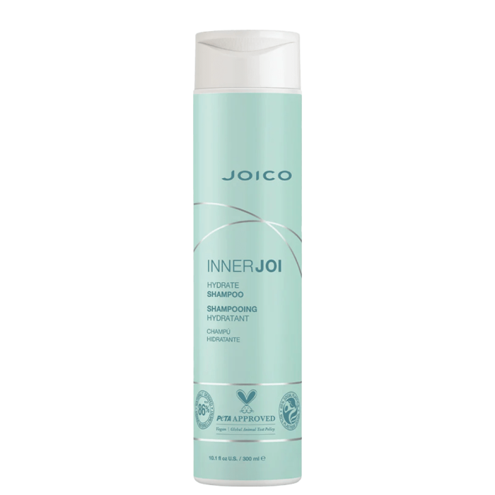 Joico Inner Joi Hydrate Shampoo е хидратиращ шампоан, който деликатно почиства и освежава косата и скалпа, без да оставя усещане за сухота. Заздравява и подхранва косата, като я прави мека на допир. Формулиран е с екстракт от ябълка, алое вера, растителен протеин и маслинов естер. Веган формула с 86% естествено извлечени съставки. Не съдържа силикони, парабени, глутен, SLS/ SLES сулфати, фталати и минерално масло. Подходящ за сухи коса и скалп.
