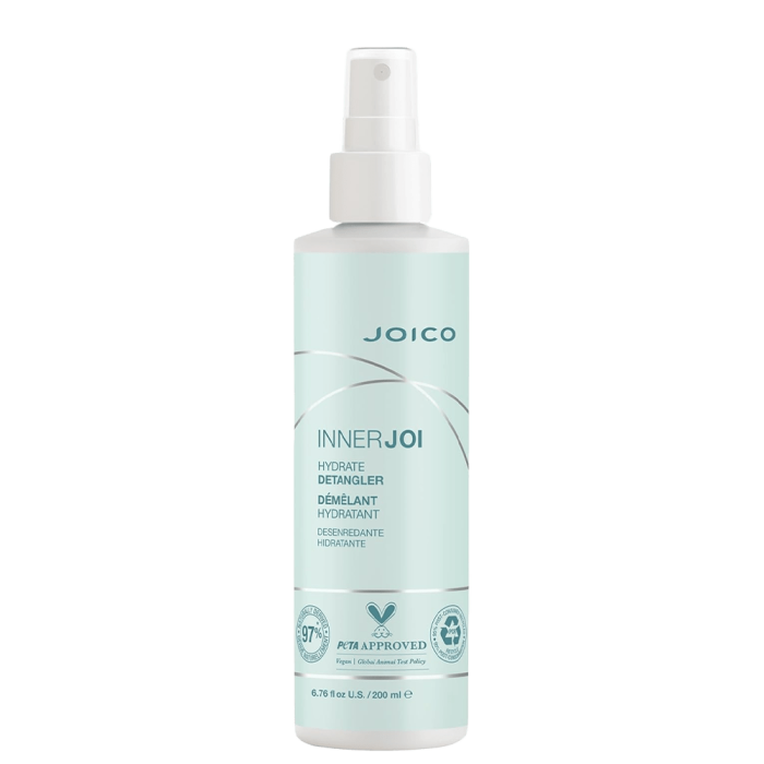 Joico Inner Joi Hydrate Detangler е спрей за разплитане, който хидратира косата още с първото нанасяне. Разплита и подхранва косата, като същевременно я изглажда и намалява фриз ефекта. Формулиран е с екстракт от ябълка, алое вера, растителен протеин и маслинов естер. Веган формула с 97% естествено извлечени съставки. Не съдържа силикони, парабени, глутен, SLS/ SLES сулфати, фталати и минерално масло. Подходящ за суха коса.