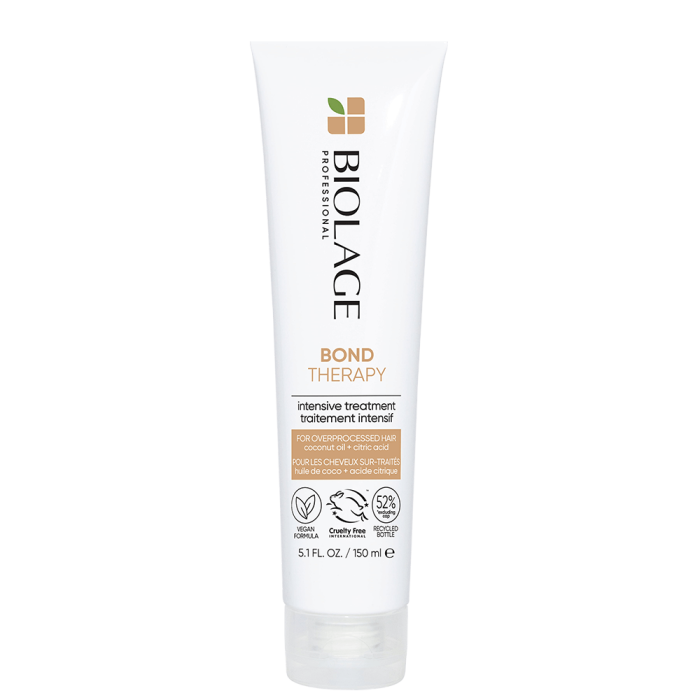 Интензивна пре-грижа за прекомерно третирана и увредена коса Bond Therapy Intensive Treatment с подхранващо и подсилващо действие. Интензивно подхранва косата, като подсилва слабите връзки в косъма. Намалява накъсването и подобрява вида на накъсаните краища, косата е лесна за оформяне и интензивно подхранена на вид и усещане. Формула, обогатена с подхранващо масло и киселина за възстановяване на връзките в косъма. Кокосовото масло подхранва и омекотява косата, като я оставя интензивно хидратирана. То предпазва повърхността на косъма, като го прави жизнен, блестящ, гладък и интензивно подхранен. Лимонената киселина подсилва слабите връзки в косъма и подобрява неговата устойчивост и сила за цялостно възстановяване отвътре навън. Продукт с веган формула*.