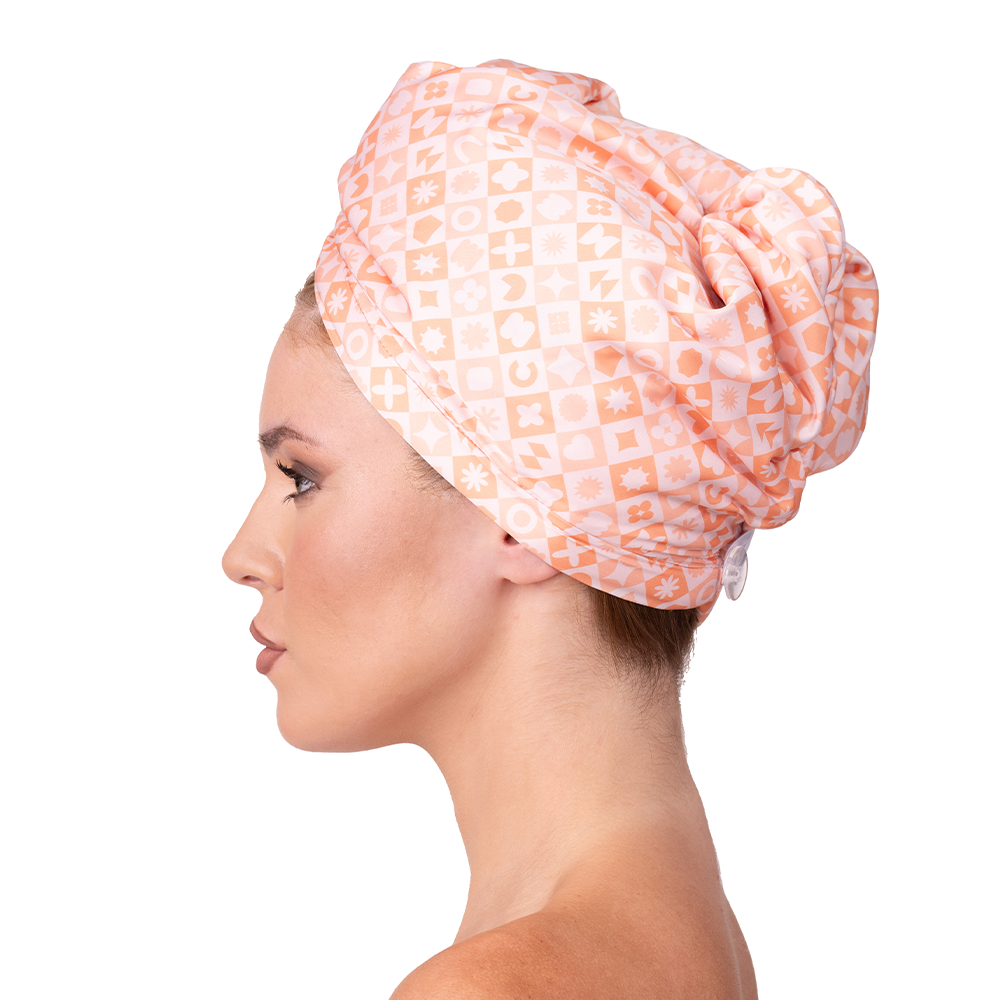 Кърпа Touch Treat намалява изсушаването на косата наполовина, независимо дали използвате сешоар, или я оставяте да изсъхне сама. Съчетава нежността на микрофибъра с блясъка на сатена, за да се превърне в универсален помощник – у дома, на плажа, по време на ваканцията, в ежедневието.