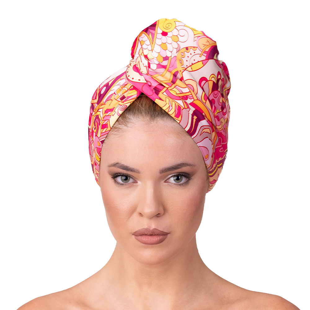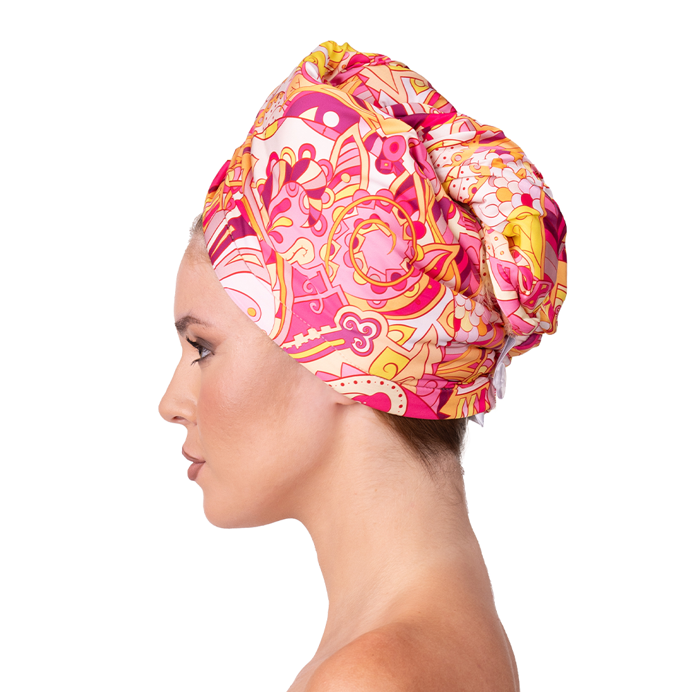 Satin & Microfiber Hair Towel SUNSET GEOMETRY