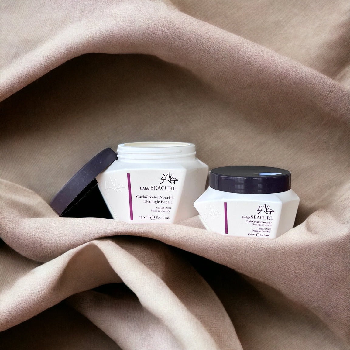 Маска SEACURL интензивно ревитализира къдравата косата, като прониква дълбоко в косъма и действа отвътре-навън. Осигурява оптимални нива на хидратация в косъма и абсолютно подхранване, което прави къдриците ултра живи и подскачащи. Изглажда стърчащите краища на косата, без да утежнява. Видимо подмладява косата като придава еластичност, блясък и мекота. Революционната формула на маска SEACURL е на основата на био-технологичен комплекс AlgaNord 5 ™, комбиниран с биотин и ниацинамид – ключови съставки с феноменално възстановяващо, хидратиращо и разкрасяващо действие върху косата. Биотинът, популярен още като витамин B7 e водоразтворим В-комплекс витамин, който допринася за заздравяването на косата, предотвратява цъфтежа и изтъняването на косата.