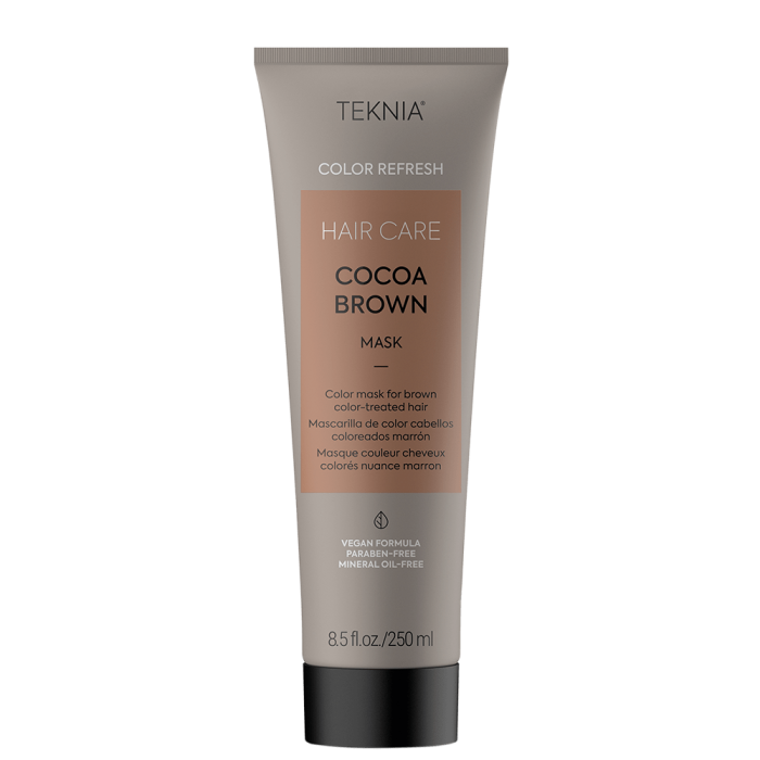 Оцветяваща маска за брюнетки LAKME TEKNIA Color Refresh Cocoa Brown Mask подсилва и защитава цвета до следващото боядисване. Обогатена е с екстракт от какао, който има антиоксидантни свойства. Възвръща жизнеността на цвета, омекотява косата и я изпълва с блясък. Резултатът е интензивен, сияен цвят и мека коса.