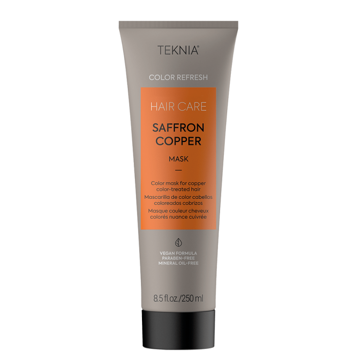 Оцветяваща маска за коса в медни тонове LAKME TEKNIA Color Refresh Saffron Copper Mask тонира и освежава цвета до следващото боядисване. Компенсира загубата на цвят, има антиоксидантно и защитно действие. Косата е изпълнена с блясък, мека и жизнена.