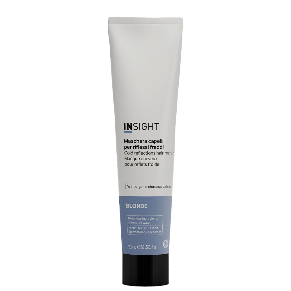 Подхранваща и хидратираща маска, която неутрализира оранжево-жълтите оттенъци при естествена и изсветлена руса коса и спомага за изглаждането ѝ.