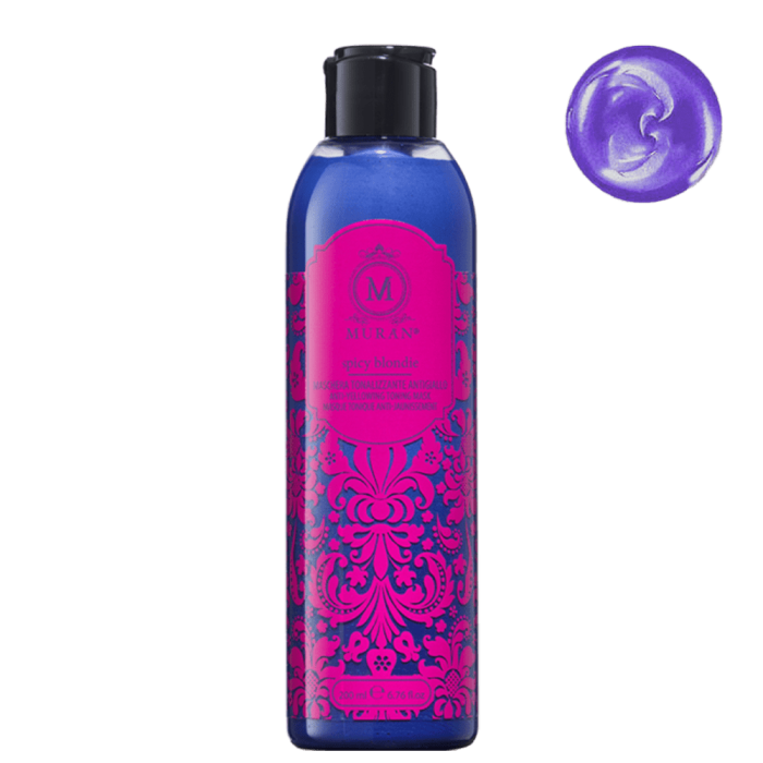 Маската за руса коса Spicy Blondie Anti-Yellowing Toning Mask разплита дължините и улеснява разресването, като премахва нежеланите жълти и оранжеви оттенъци. Идеално освежава студените тонове на изрусената коса и придава цялостен блясък. В състава си съдържа хидролизиран кератин и рициново масло, които имат реструктуриращо и изглаждащо действие, придават блясък и копринена мекота на дължините.