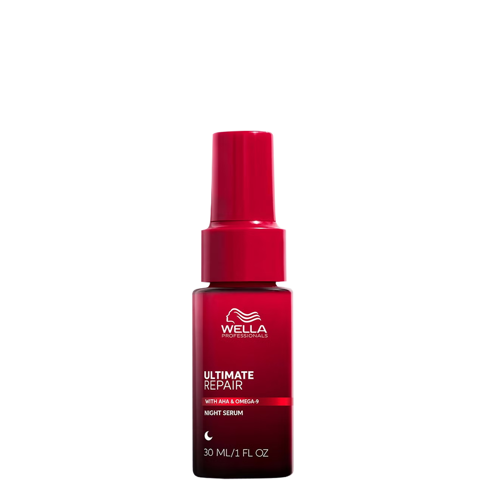 Нощният серум Wella Professionals Ultimate Repair Night Serum има изключително лека формула, която защитава косата от триенето с калъфката, Запазва цвета, намалява стегнатостта за до 6 пъти по-голяма гладкост. Косата е съживена, сияйна и по-здрава.