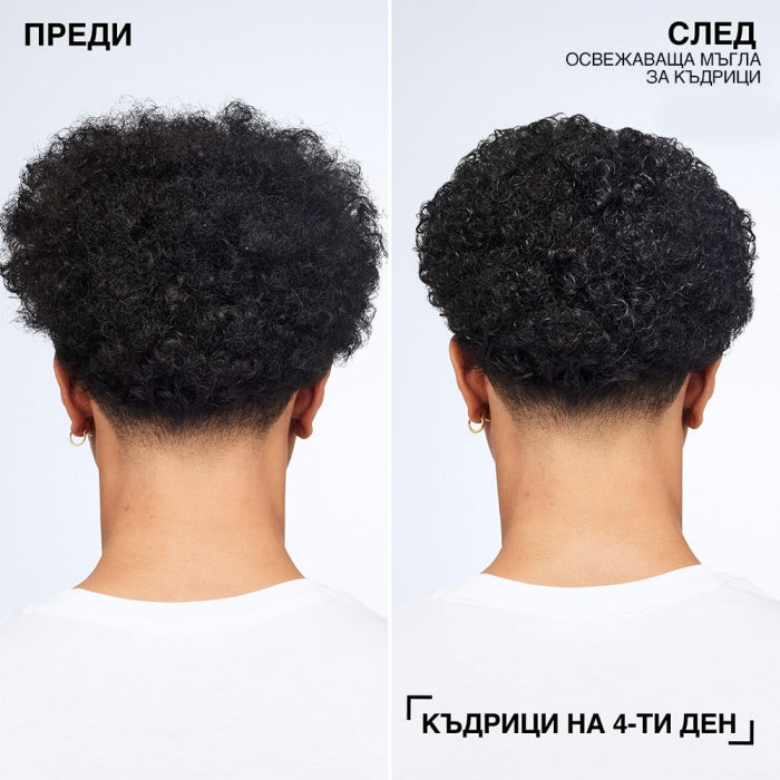 Освежаваща мъгла за къдрици под формата на лек спрей, която освежава, хидратира, укротява фриз ефекта, като дефинира и възстановява формата на къдриците между измиванията. Формулата съдържа сквалан, известен като защитен агент, който задържа хидратацията и масло от жожоба, което осигурява леко покритие за блясък и защита от фриз ефект без утежняване. Продукт, подходящ за неоформена, суха, непокорна къдрава коса, която има нужда от хидратация. Препоръчва се за къдрава и много къдрава коса. Подходящ за боядисана коса.