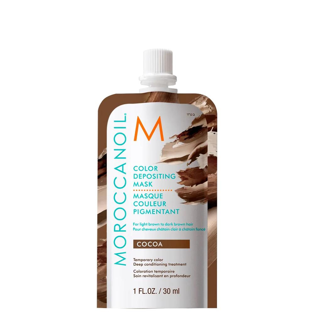 Moroccanoil Color Depositing Mask Cocoa е маска, която придава наситени кафяви нюанси и е подходяща за употреба върху светлокафява до тъмнокафява коса.