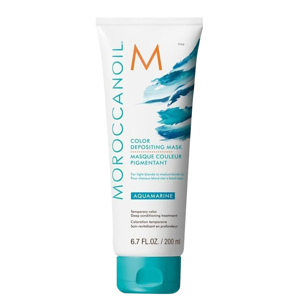 Moroccanoil Color Depositing Mask Aquamarine е маска, която придава хладни сини нюанси и е подходяща за употреба върху светлоруса до средно руса коса.