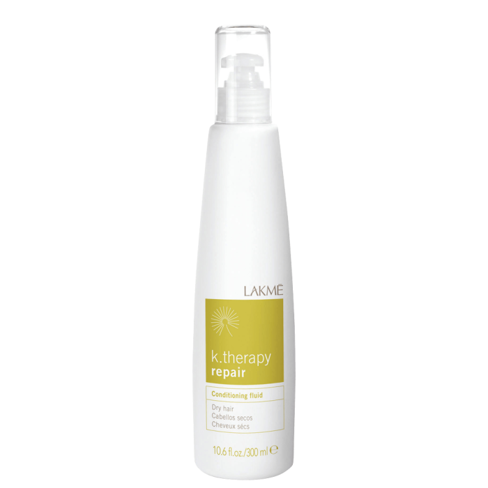 Подхранващият балсам за суха коса LAKME k.therapy Repair Fluid подхранва, заздравя, омекотява и прави лесни за разресване сухa и много сухa косa. Осигурява дълготрайна хидратация. Възстановява защитния хидролипиден слой на косъма и възвръща живителните сили, еластичността и блясъка на косата. Предотвратява накъсването и улеснява стилизирането.