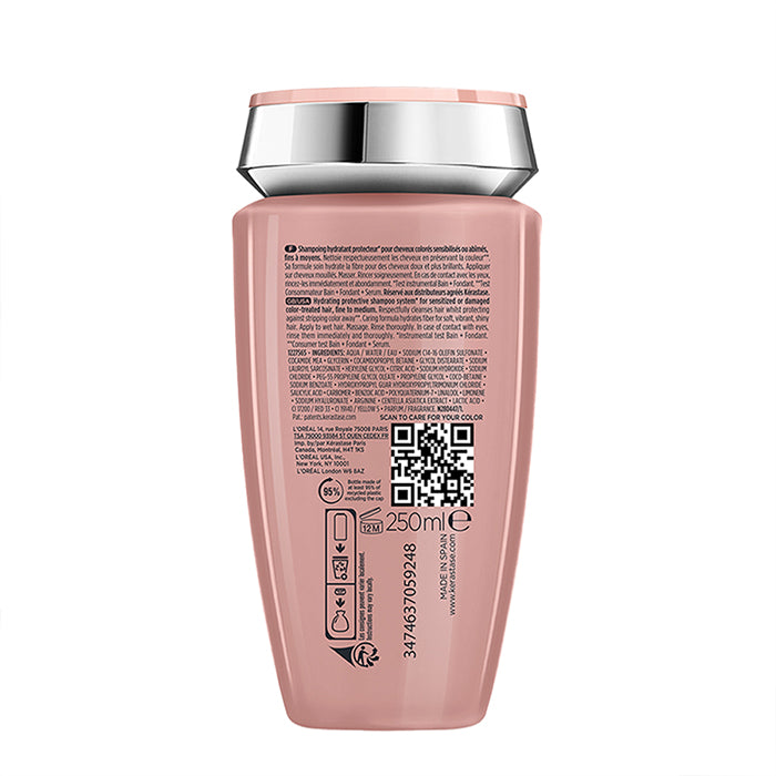 Хидратиращ предпазващ шампоан за чувствителна или увредена боядисана коса. С формула на основата на аминокиселина и екстракт от Центела Азиатика, продуктът нежно почиства и хидратира косата, като същевременно помага за възстановяването на косъма и предпазва цвета от избледняване. Аминокиселините имат специалната способност да проникват във вътрешността на косъма и да го подсилват. Екстрактът от растението Центела Азиатика е известен с успокояващите си и антиоксидантни свойства, които се отразяват благоприятно на чувствителна или увредена боядисана коса.
