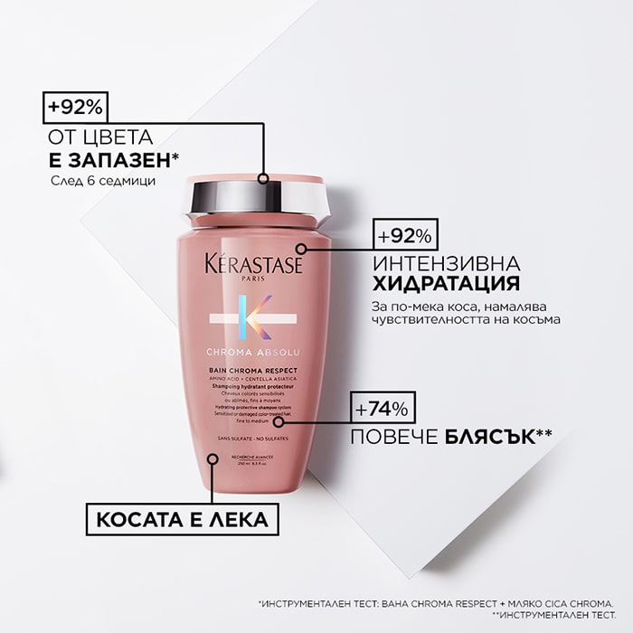 *Инструментален тест: шампоан за фина коса Chroma Respect + балсам Cica Chroma.