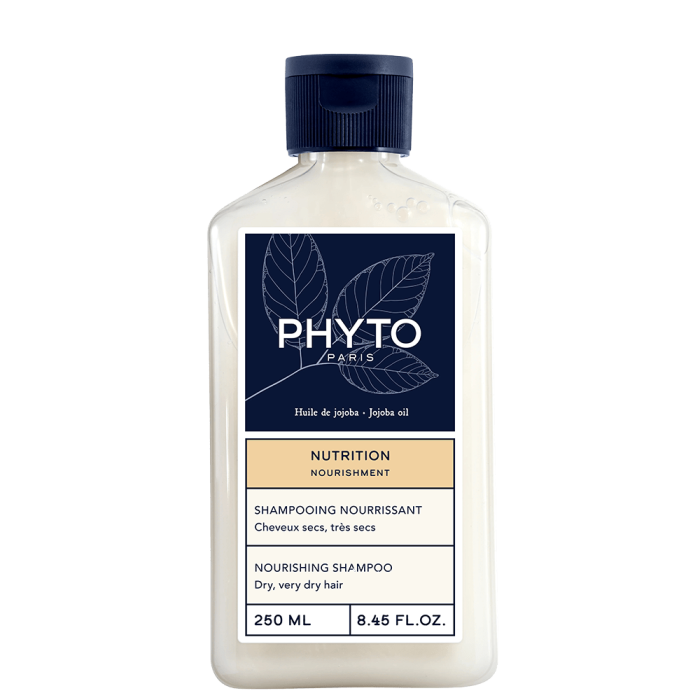Подхранващият шампоан за суха до много суха коса PHYTO Nourishing Shampoo деликатно и нежно почиства косата, без да я утежнява. В резултат, косата е мека, подхранена и видимо по-жизнена. Формулата съдържа масло от жожоба, което помага за подхранването на косъма отвътре. Екстрактът от бяла ружа прави косата два пъти по-бляскава.