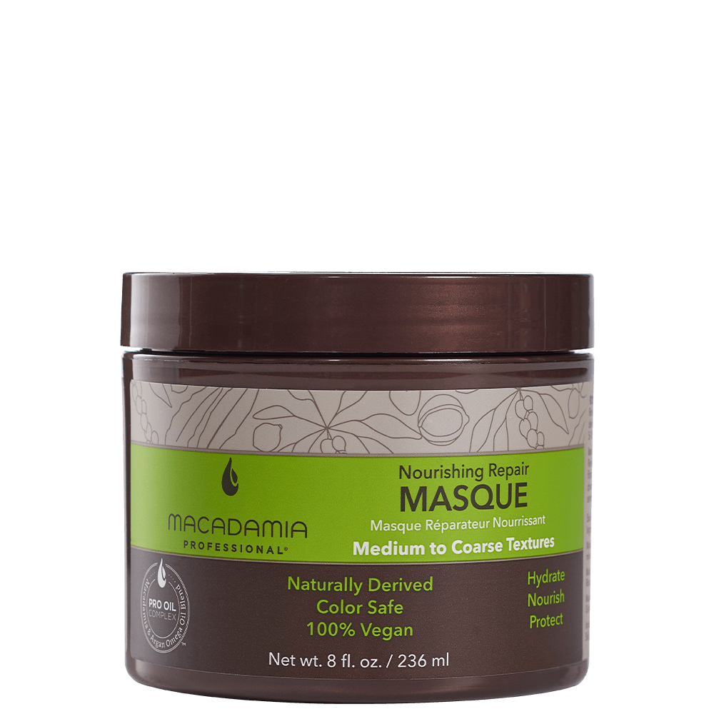 Маската Macadamia Professional Nourishing Repair Masque е създадена специално за интензивно подхранване и възстановяване на средна до плътна коса. Формулата ѝ помага за укрепване на косъма и намаляване на накъсването, като същевременно защитава от външни агресори и топлинна обработка.