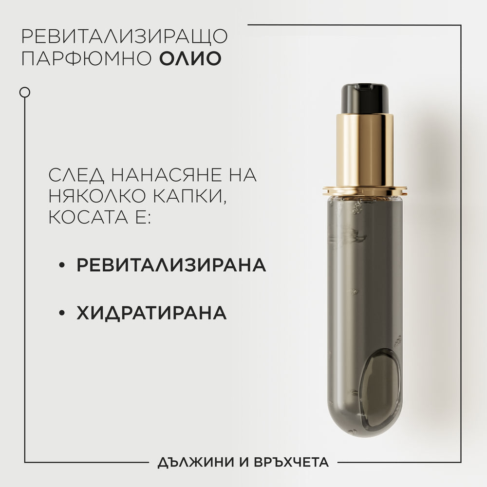 Продукт, обогатен с екстракт от смирна, рядка ценна съставка, известна със своите ревитализиращи свойства. Съдържа комбинация от мощни активни съставки за интензивно действие. Подхранва, хидратира и ревитализира косъма. Осигурява фин аромат, който комбинира изтънчени нотки на кедър, мускус, чаена роза и лайм, които обгръщат косата и имат дълготраен ефект. В опаковка, направена от 95% рециклирана пластмаса.
