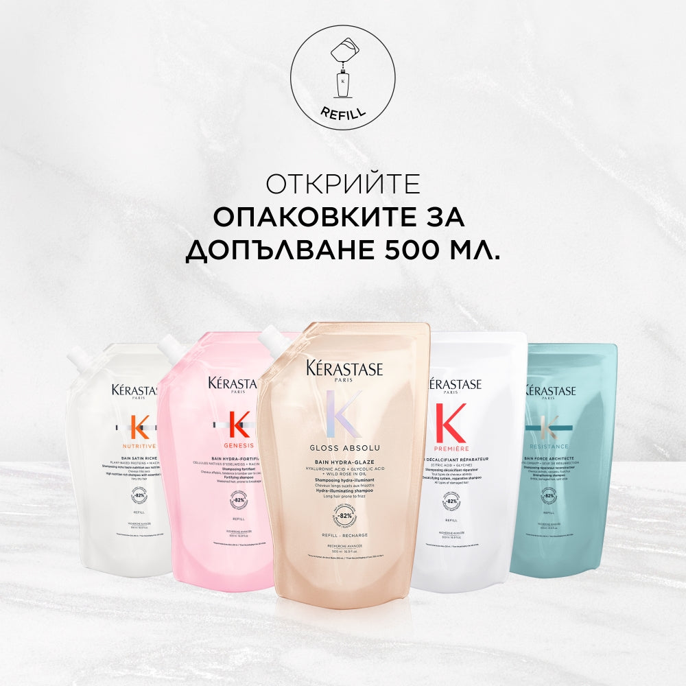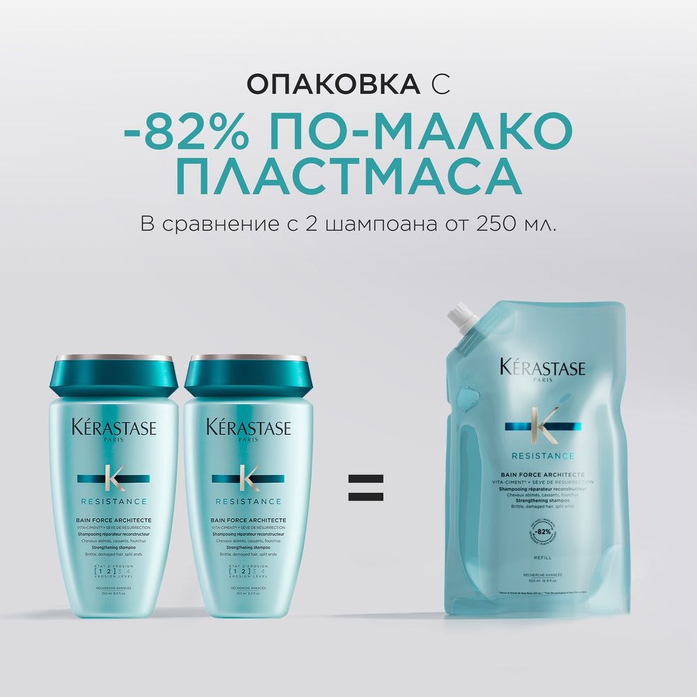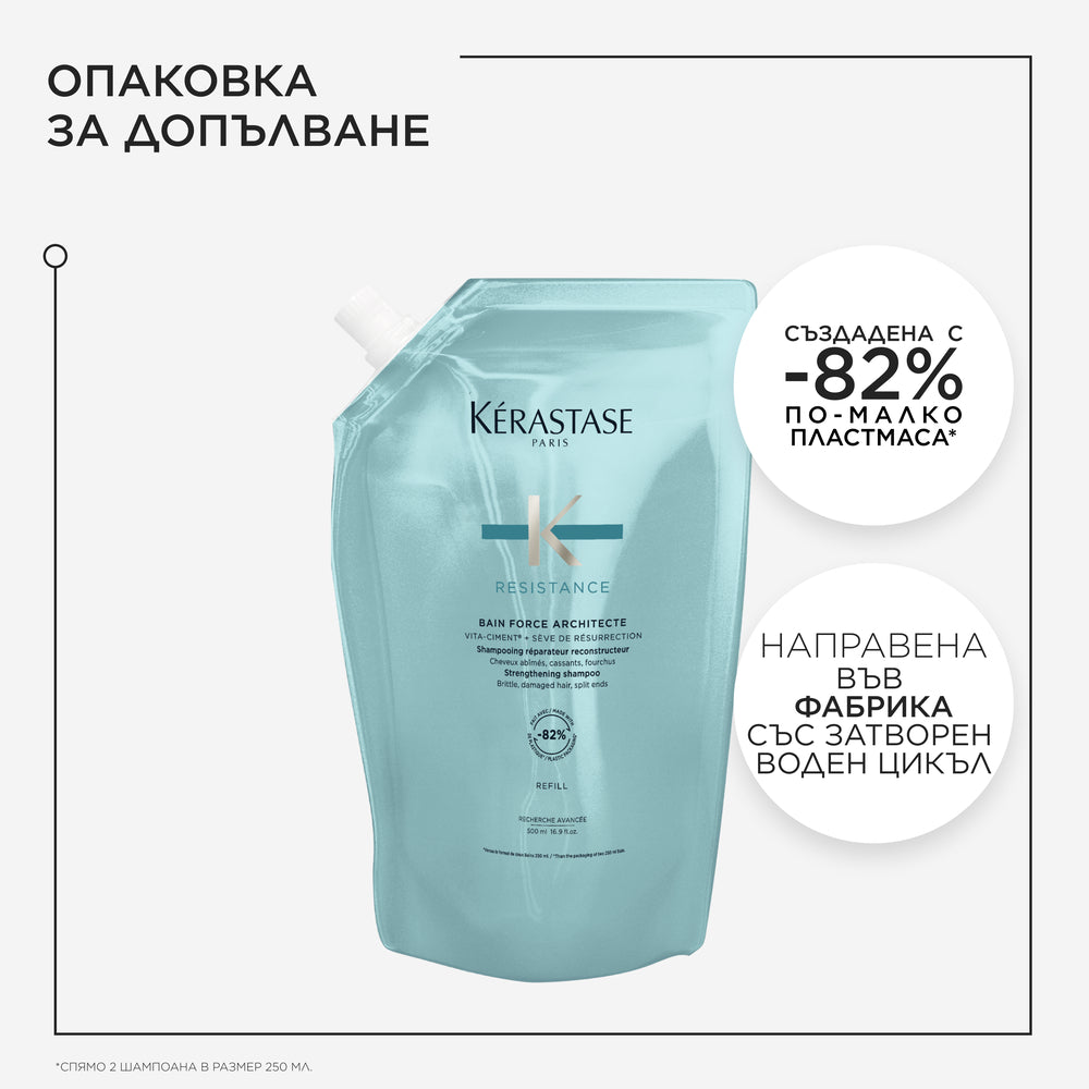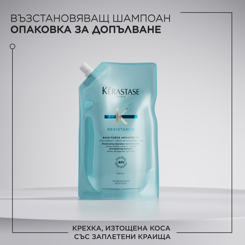 Пълнител за шампоан за безжизнена, порьозна и силно изтощена коса Kérastase Bain Force Architecte