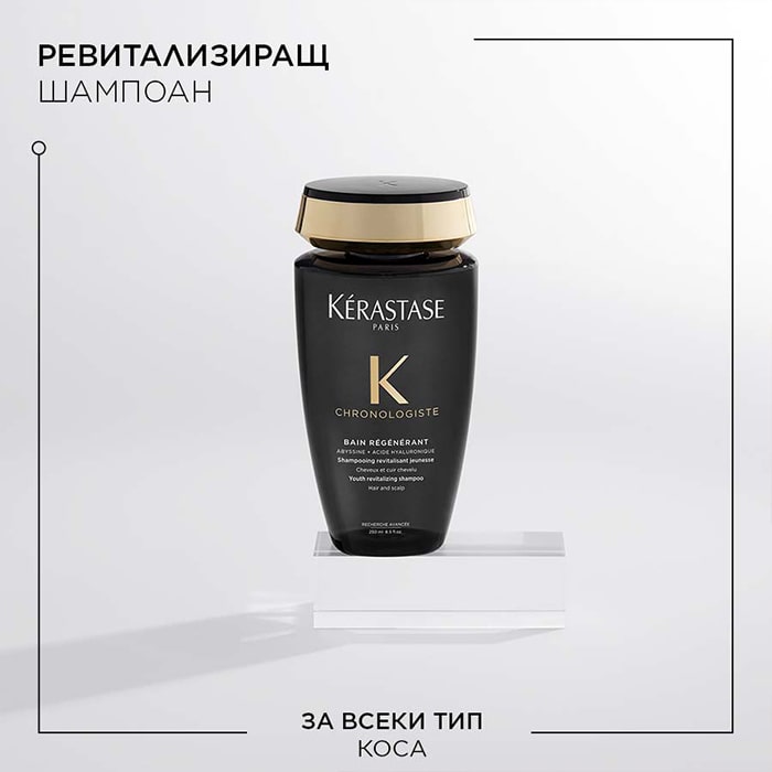 Серията Kerastase Chronologiste съчетава иновация и луксозно изживяване, за да предостави цялостна грижа, включваща скалпа, косата, дължините и краищата. Съдържащите се мощни съставки подхранват и подсилват както кожата на главата, така и всеки косъм за видимо по-млади коса и скалп. А луксозният аромат на чаена роза, божур и магнолия доставя истинска наслада за сетивата.