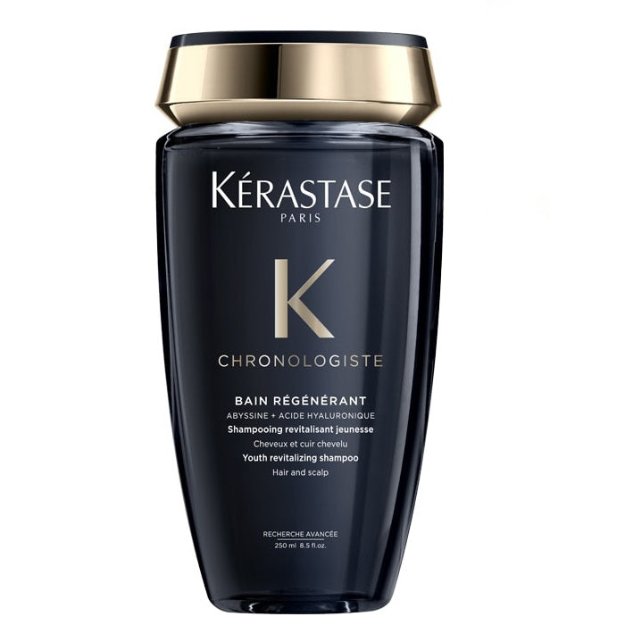 Шампоанът Kérastase Chronologiste е концентрирана грижа богата на витамини и ценни активни съставки, която осигурява безупречно почистване на всеки тип коса от корена до върха. Неговата интензивна формула има силата да регенерира напълно косата и да ѝ придаде съвършен здрав вид. Детоксикира, ревитализира и съживява безжизнената коса. Заздравява скалпа и оставя косата хидратирана, плътна, мека и пълна с живот.