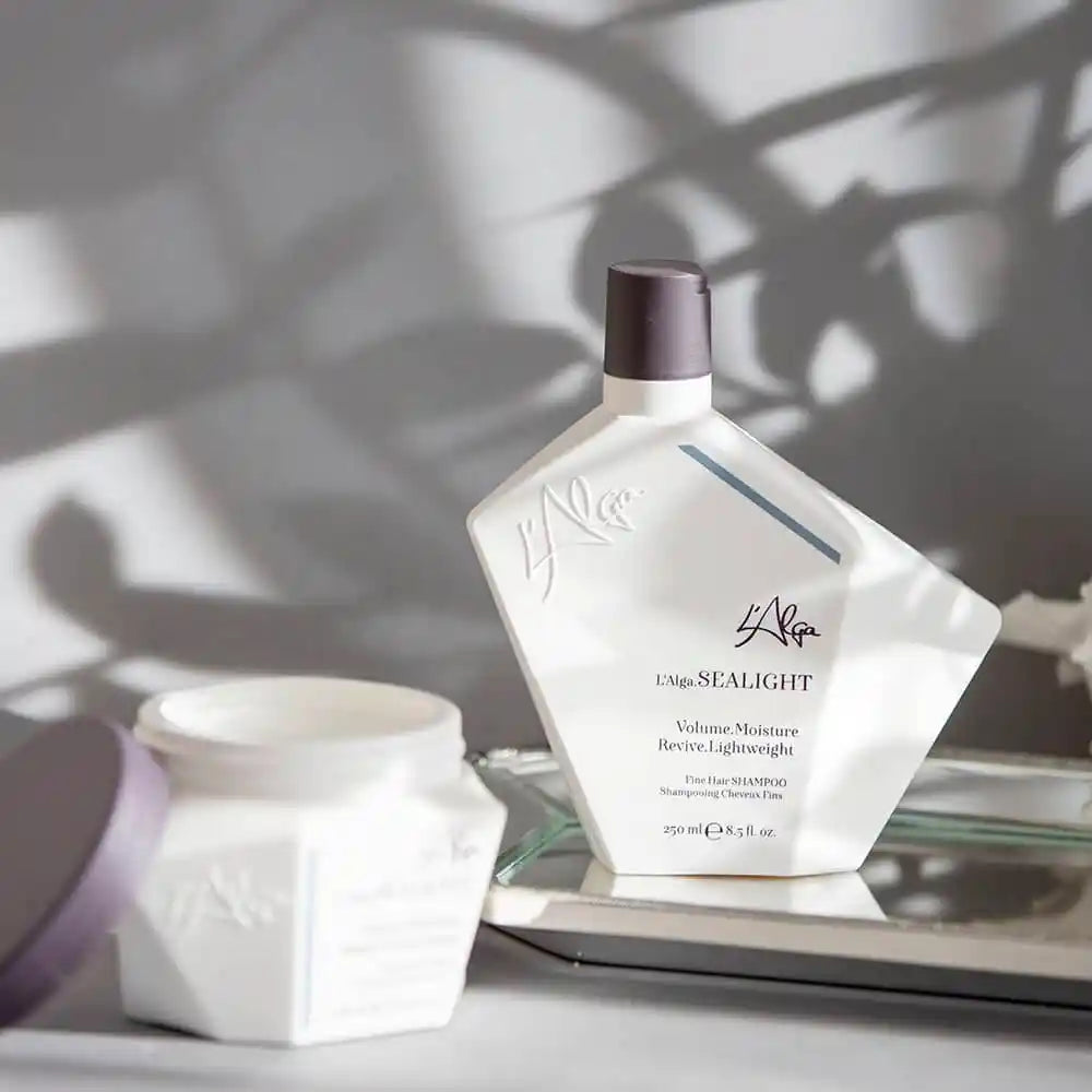 Шампоан SEALIGHT е нежен към кожата на главата - почиства замърсяванията, без да пресушава скалпа или да утежнява косата. Повдига косата от корена, като осигурява пищен обем и съживява безжизнените дължини, благодарение на революционна формула. Шампоанът е на основата на био-технологичен комплекс AlgaNord 5 ™, комбиниран с биотин и ниацинамид – ключови съставки, които ревитализират и хидратират косата. Биотинът, популярен още като витамин B7 e водоразтворим В-комплекс витамин, който допринася за заздравяването на косата, предотвратява цъфтежа и изтъняването на косата.
