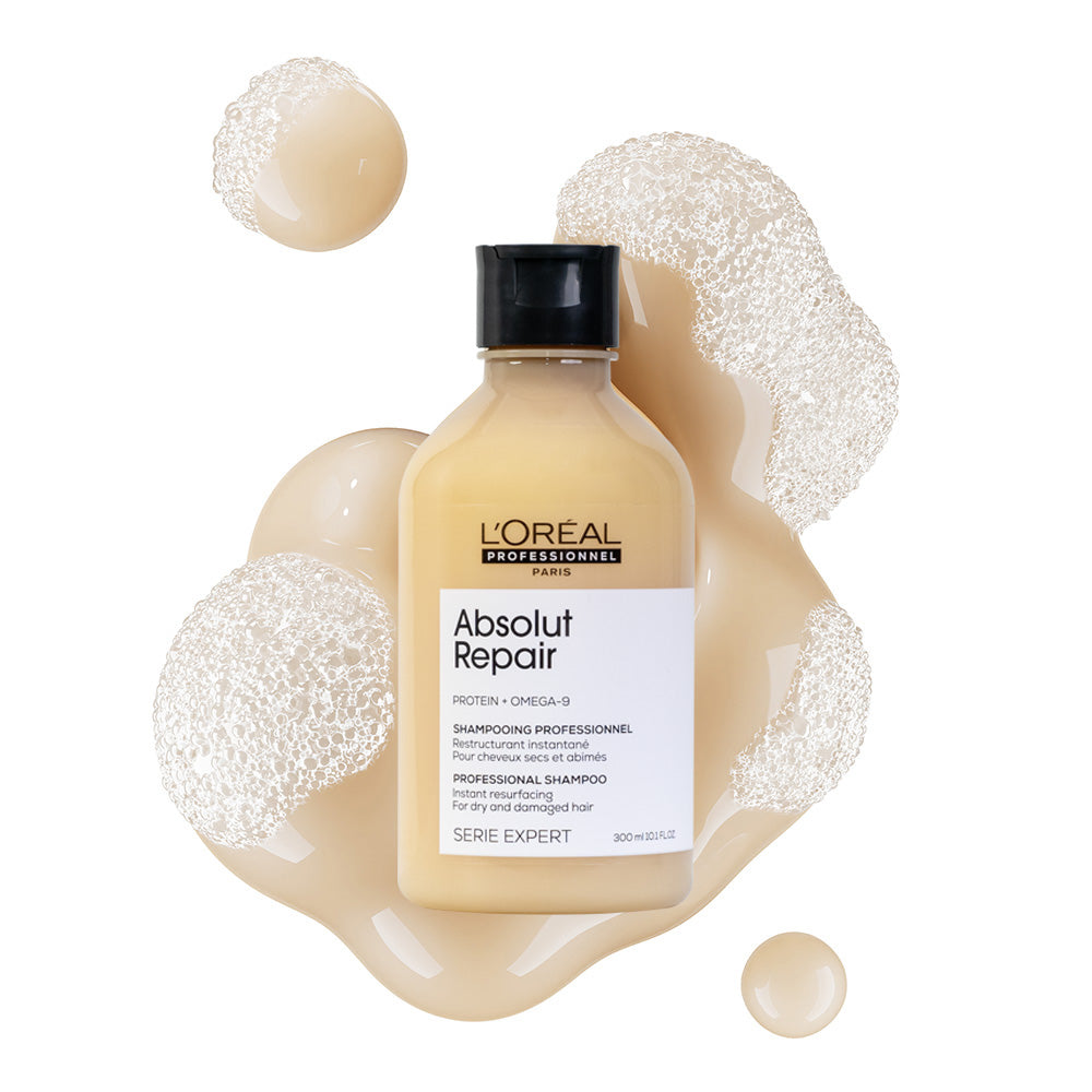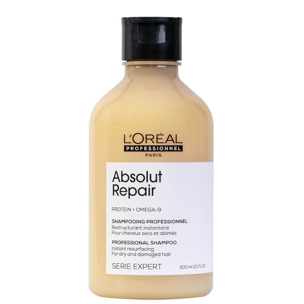 Шампоан Absolut Repair възстановява косата мигновено! Той почиства косата нежно, прави я гладка и копринена, без да я утежнява. Шампоанът Absolut Repair доставя на косата ценни ползи, които са били загубени поради боядисване, слънчево увреждане и агресори като хлор, сол и топлина. Когато косата е била подложена на подобни вредни влияния тя се чупи и накъсва лесно, трудно се поддава на стилизиране, цветът й избледнява и прави повърхността й неравна.