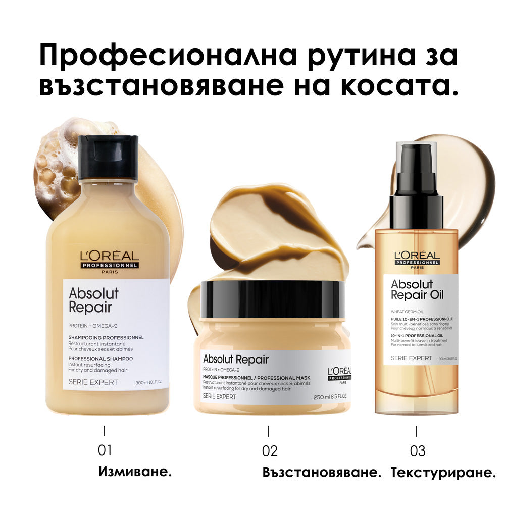 Шампоанът Absolut Repair е високотехнологично постижение и съдържа в себе си най-реконструиращите съставки, които възстановяват всички увредени участъци на косата.