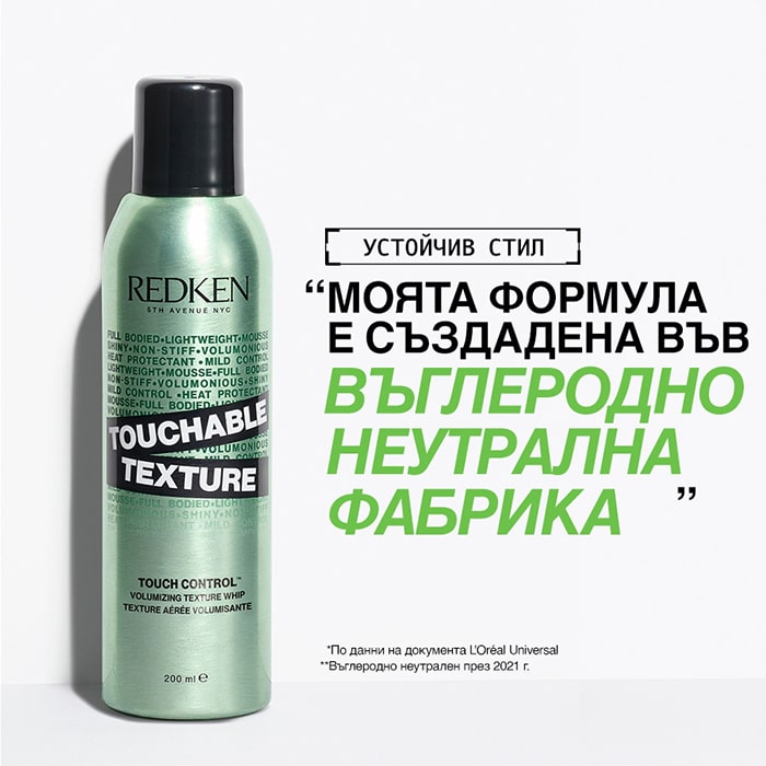 Подхранваща пяна за коса Redken Touchable Texturе за оформяне на косата със средна фиксация. Придава на косата обем, плътност и естествен блясък. Не слепва и не води до утежняване. Средната фиксация позволява едновременно контрол и гъвкавост на стайлинга. Нанасянето на подхранващата пяна предпазва косата от наелектризиране и има анти фриз ефект.