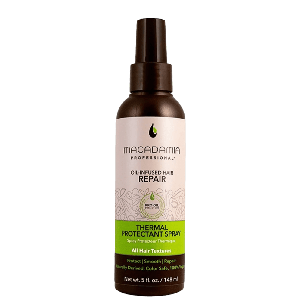 Macadamia Professional Thermal Protectant Spray е термозащитен спрей, който предпазва косата от увреждане при топлинна обработка до 230°C. Спреят създава невидим защитен слой върху косата, намалява накъсването и придава естествен блясък, без да утежнява. Идеален за употреба преди сушене със сешоар, изправяне с преса или къдрене.