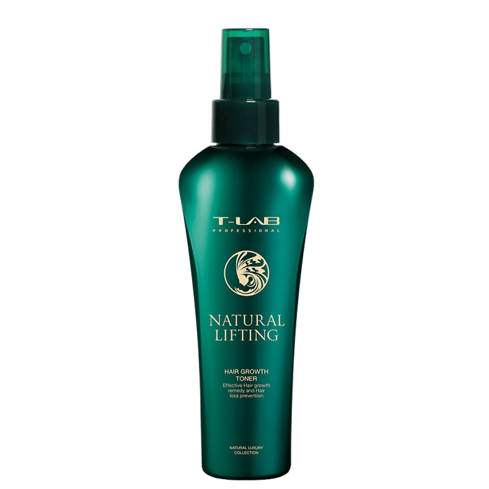 Тоник за растеж на косата и обем T-LAB Natural Lifting Hair Growth Toner стимулира естествения растеж на косата, като едновременно с това ѝ придава дълготраен обем и повдигане от корена. Подходящ е за всеки тип коса, особено тънка и изтъняваща, която се нуждае от повече обем и плътност. Формулата с натурални съставки стимулира растежа, като съживява космените фоликули. Тоникът предотвратява косопада, възвръща баланса на скалпа и укрепва корените. Осигурява подобрена плътност и хидратира скалпа в дълбочина. Намалява прекомерното омазняване и възстановява бариерата на кожата на скалпа. Съдържа 98% натурални съставки.