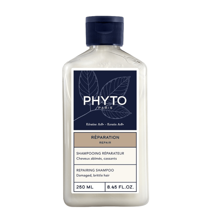 Шампоанът PHYTO Repairing Shampoo нежно почиства увредената, накъсана коса и я възстановява отвътре. Защитава и изглажда косата, като намалява накъдрянето, благодарение на „Кератин A18+“, екстракта от слънчоглед и танини от Тара, оставяйки косата красива, гладка и бляскава. Съдържа 92% съставки от естествен произход. Не съдържа силикони, феноксиетанол и полиетилен гликол.