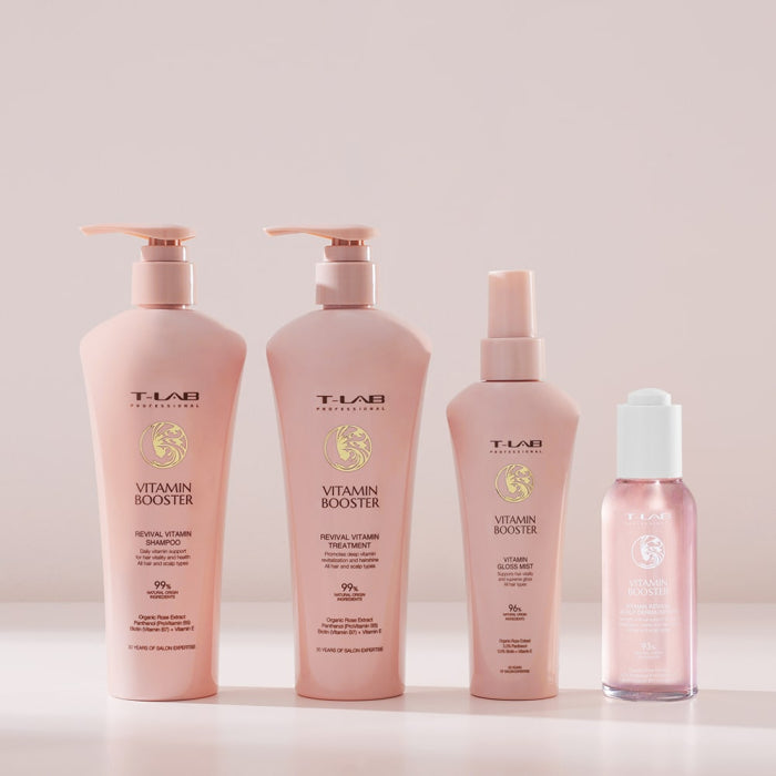 Възстановяваща маска за коса с витамин-комплекс T-LAB Vitamin Booster Revival Vitamin Treatment осигурява на косата дълбоко подхранване, хидратация и възстановяване. Подходяща за всеки тип коса и скалп. Съдържа активни органични съставки, които укрепват косъма и успокояват скалпа, правейки косата гладка и мека. Съдържа екстракт от органична роза, богат на витамини А, С и Е.