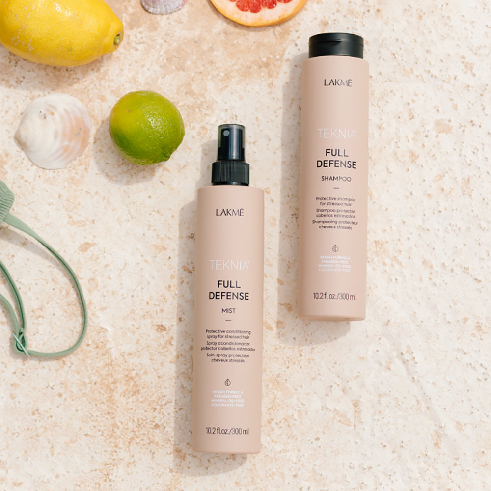 Защитен шампоан LAKME TEKNIA Full Defense Shampoo нежно почиства и измива стресираните от вредното влияние на околната среда коса и скалп. Предпазва скалпа и дължините от дехидратация. Защитава от увреждане, причинено от вредните UV лъчи, солената вода, хлор, вятър и “синя светлина”. Запазва косата жизнена, хидратирана и блестяща.