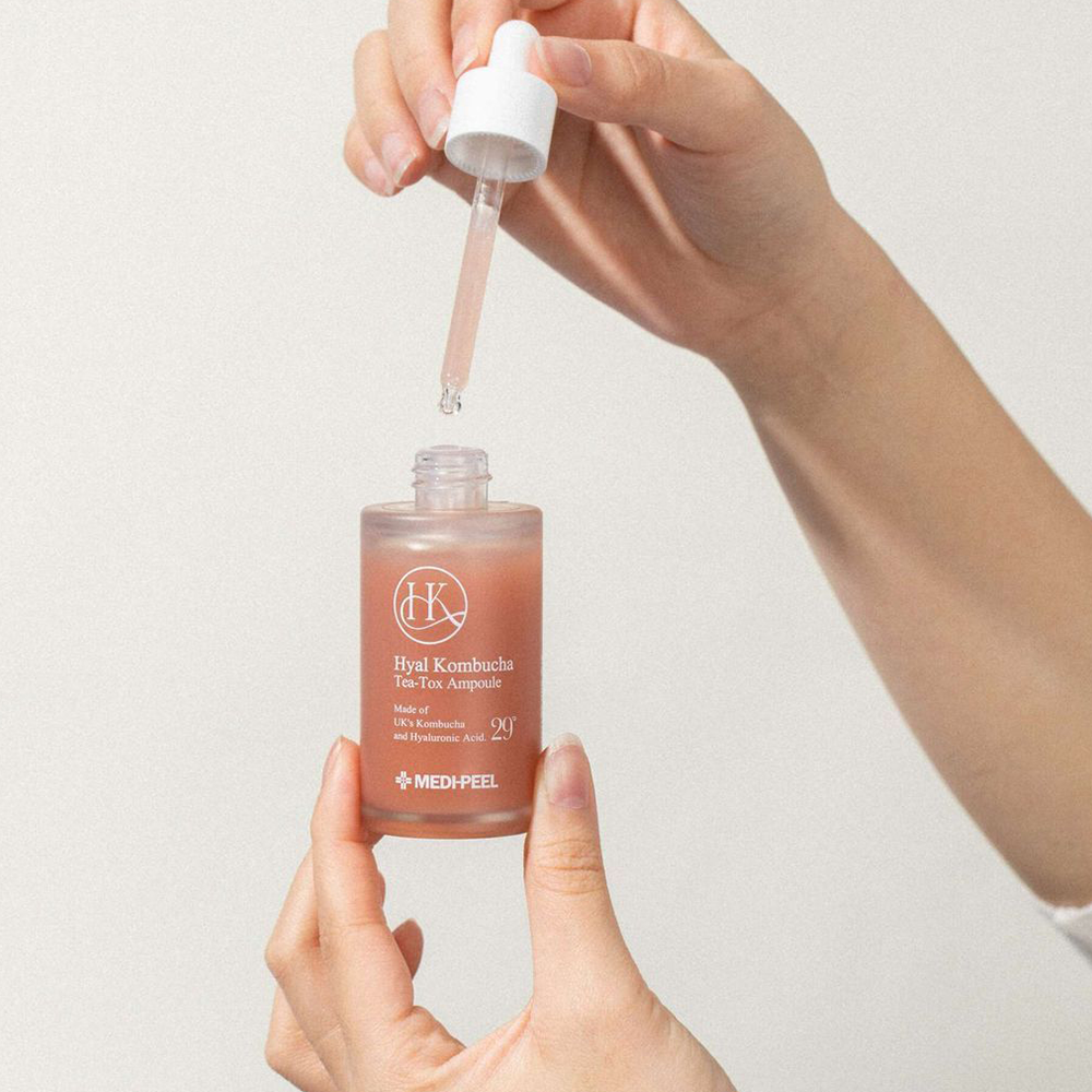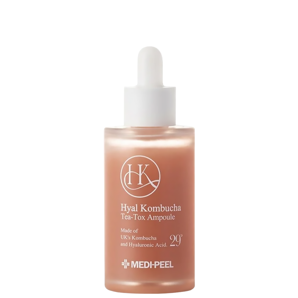 Medi-Peel Kombucha Tea-Tox Ampoule е ампулен серум за лице с комбуча, 5 вида серамиди и 8 вида хиалуронова киселина. Хидратира кожата в дълбочина, подхранва и се бори с фините линии и бръчките. Предотвратява появата на нови бръчки и забавя признаците на стареене на кожата. Успокоява и изравнява тена, намалявайки пигментните петна и белези от акне.