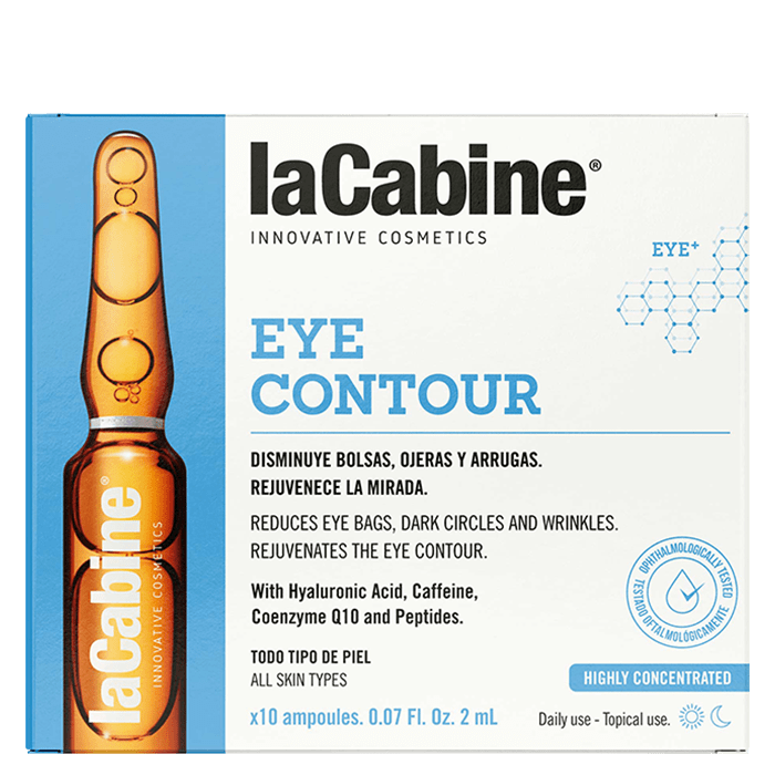 Eye Contour са висококонцентрирани ампули за околоочната зона. Видимо намаляват торбичките, тъмните кръгове и бръчките, като същевременно хидратират и подмладяват. Подобряват еластичността на околоочния контур, борят се ефективно с подпухването и признаците на умора. Уникална формула с кофеин, пептиди, хиалуронова киселина и коензим Q10.