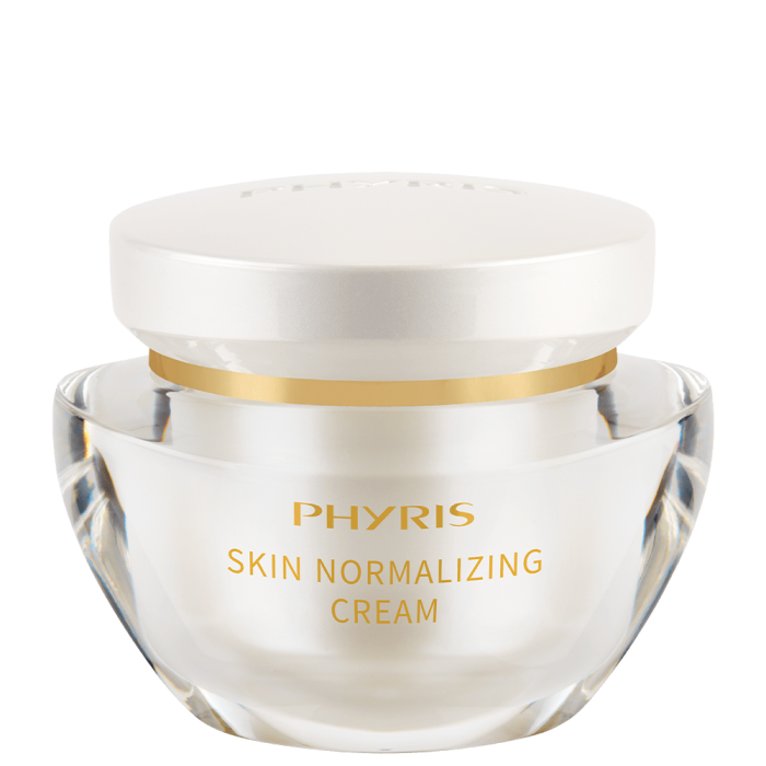 PHYRIS Derma Control Skin Normalizing Cream осигурява 24-часова балансираща грижа за мазна кожа, склонна към акне и пигментни петна. Контролира омазняването и нормализира производството на себум. Съдържа комплекс от активни съставки, насочени към почистване на наслояванията и успокояване на раздразненията, причинени от замърсяване на повърхностния слой на кожата. Успокоява и балансира кожата, като едновременно с това осигурява защита от свободните радикали. Матира и изравнява тена на лицето. Кожата е балансирана, спокойна и без следи от раздразнение.