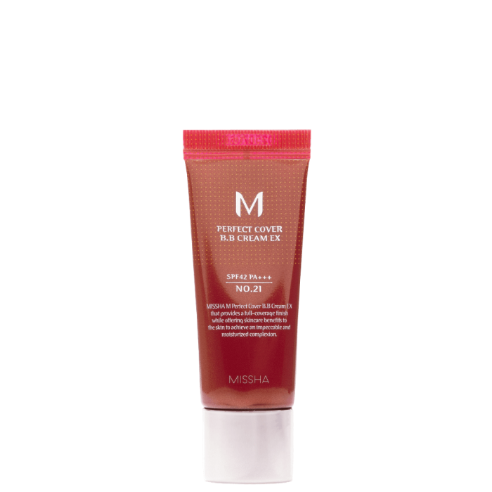 MISSHA M Perfect Cover BB Cream SPF42 PA+++ е BB крем със слънцезащитен фактор SPF42 PA+++. Предпазва кожата от вредните UV лъчи, стареене и ефектите на околната среда. Тониращият му ефект прикрива несъвършенствата, тъмните кръгове и пигментация. Изсветлява и придава на кожата равномерен тен и текстура. Хидратира, подхранва и озарява, като придава безупречен естествен завършек.