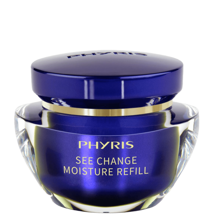 Дълбоко хидратиращият крем за лице PHYRIS See Change Moisture Refill Cream е богат на ценни съставки, подходящ за зряла кожа, загубила своя блясък с необходимост от хидратация. Активно въздейства върху процесите по стареене. Нежната формула е обогатена с хиалуронова киселина и екстракт от морски водорасли, които събуждат енергията на кожните клетки и стимулират синтеза на колаген. Кремът осигурява 24-часова интензивна хидратация. Кожата е дълбоко подхранена, балансирана и копринено гладка.