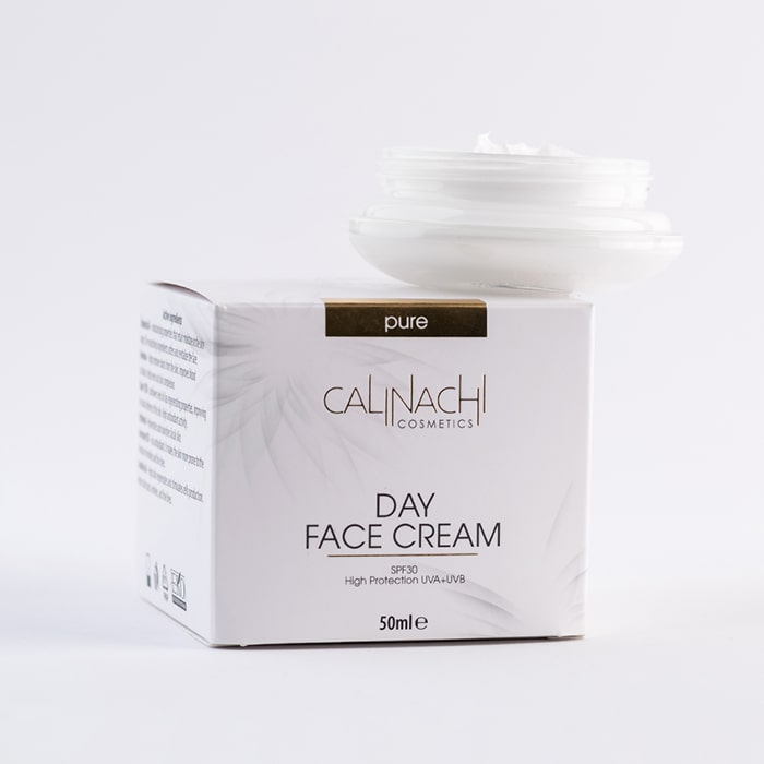 Дневен крем Calinachi Day Face Cream SPF30 осигурява хидратация и дълбоко подхранване на кожата на лицето, шията и деколтето. Кремът е с лека текстура и същевременно с много богат състав за възстановяване на кожата, стягане и повдигане на контура. Намалява и предпазва образуването на фините линии и бръчки, и изравнява тена. Стимулира синтеза на епидермални ключови липиди. Поддържа правилното функциониране на хидро-липидния слой. Съдържа UV-филтри, които предпазват кожата от вредните слънчеви лъчи. Подходящ за всеки тип кожа. Може да се използва и за околоочния контур.