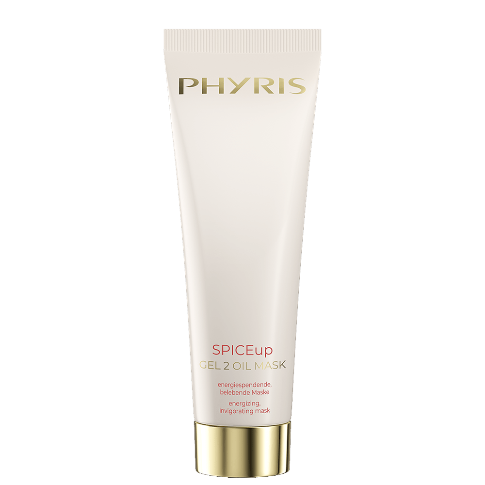 Енергизиращата маска PHYRIS SPICEup Gel 2 Oil Mask е иновативен продукт, който енергизира кожата, озарява я и възвръща младежкия ѝ вид. Формулирана с екстракт от чили и пипер, подходяща за всеки тип коса с фини линии и бръчки, и първи признаци на стареене. Комплексът от масло от манука, кора от магнолия и черен пипер има успокояващ и защитен ефект. Активните съставки осигуряват баланс на микробиома и намаляват производството на себум, като по този начин противодействат на появата на пигментни петна по кожата. Всички продукти от серията SPICEup са разработени да действат в перфектна хармония. Могат да бъдат използвани самостоятелно или в комбинация – за да поемете на своето персонализирано пътешествие в света на PHYRIS!