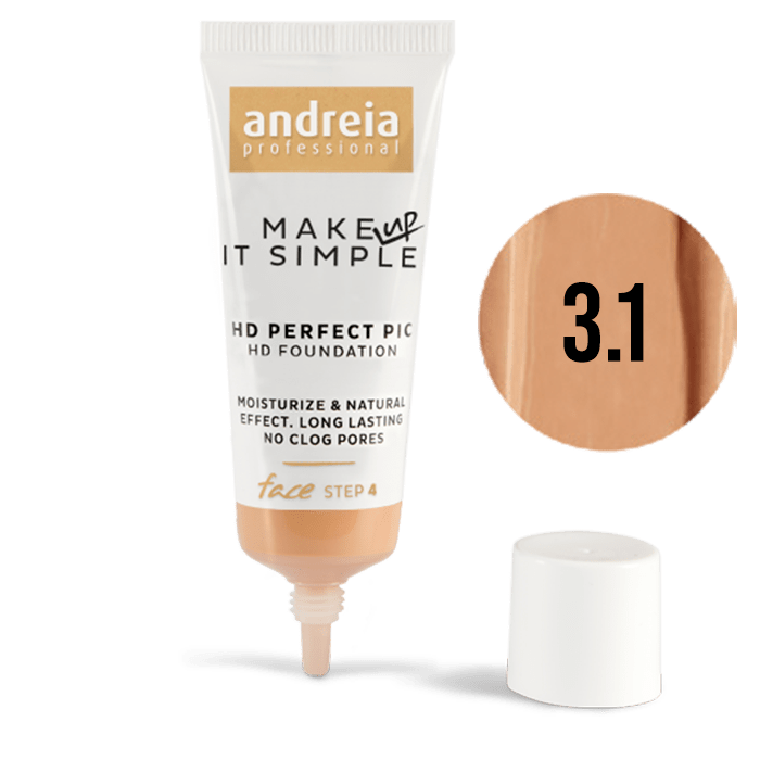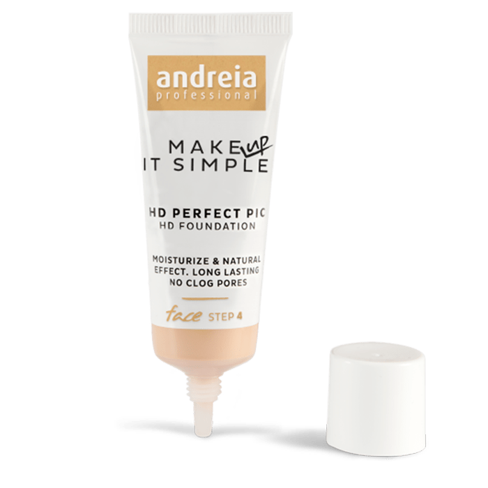 Безупречната професионална визия е постижима с фон дьо тен Andreia Professional HD Perfect Pic Foundation. Високопокривната флуидната текстура изравнява тена на лицето, без да оставя неприятен ефект на маска и следи от нанасяне. Придава естествено сияние на кожата. Леката дишаща формула се нанася лесно, прикрива ефективно порите и несъвършенствата. Кожата изглежда видимо подхранена и озарена, със съвършено изравнен естествен тен.