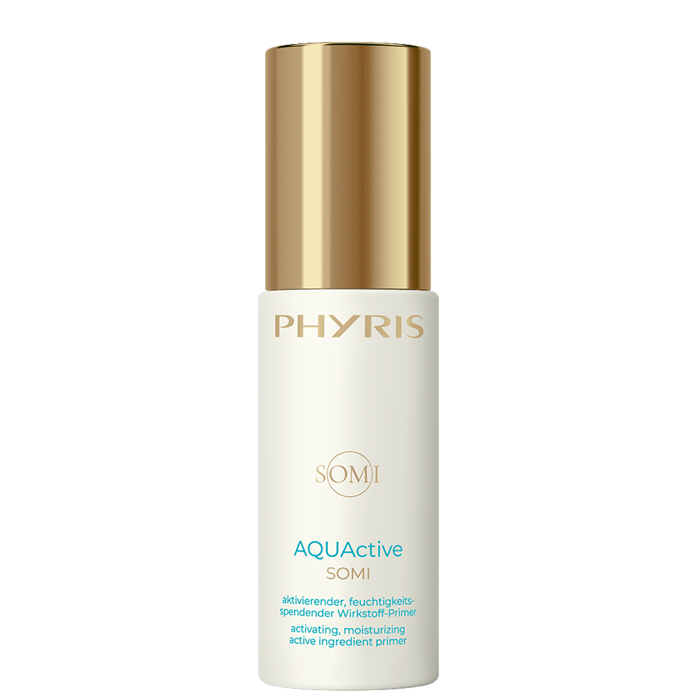 PHYRIS AQUActive SOMI е интензивно хидратираща основа-праймър с микро хиалуронова киселина и липозомно капсулирана термална вода. Хидратира, подхранва и подпомага абсорбирането на останалите продукти от грижата за кожата. Благодарение на иновативната си формула, AQUActive SOMI активира естествените функции на кожата, повишава устойчивостта на кожната бариера и помага за поддържането на оптимални нива на хидратация. Продуктите SOMI попадат в етап II от трифазната грижа за кожа на PHYRIS. SOMI e единствената грижа за лице, която се нанася след почистване и непосредствено преди нанасяне на крем или серум за лице. SOMI активира естествените функции на кожата, подобрява защитата и запазва баланса на хидратация.